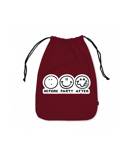 Medium cotton pouch with design 1120 BEFORE PARTY AFTER in color DARK RED
