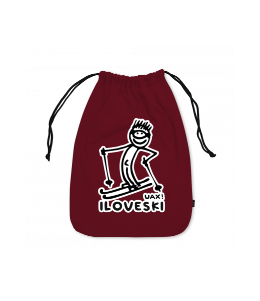 Medium cotton pouch with design 1122 I LOVE SKI in color DARK RED