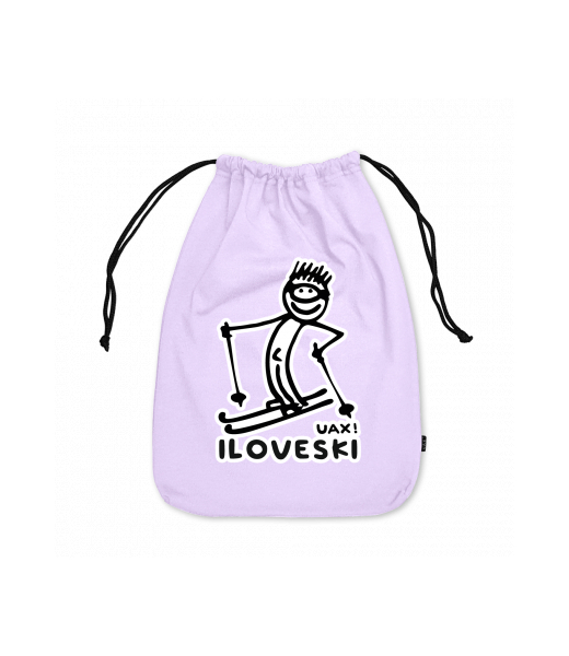 Medium cotton pouch with design 1122 I LOVE SKI in color LAVENDER