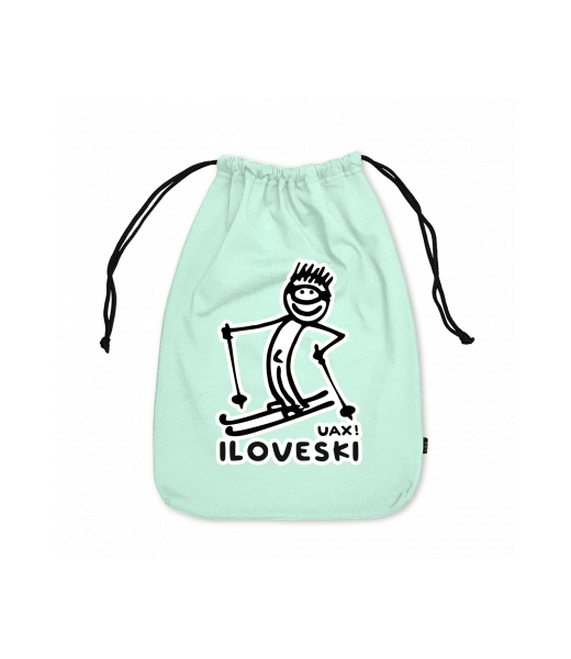 Medium cotton pouch with design 1122 I LOVE SKI in color MINT