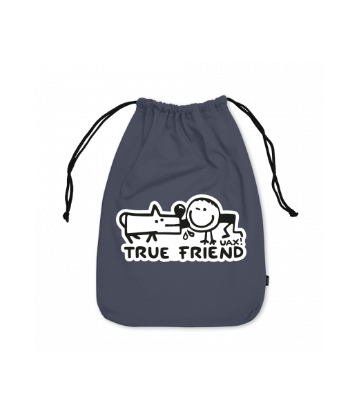 Medium cotton pouch with design 1123 TRUE FRIEND in color GRAY INK