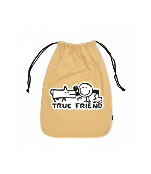 Medium cotton pouch with design 1123 TRUE FRIEND in color MUSTARD