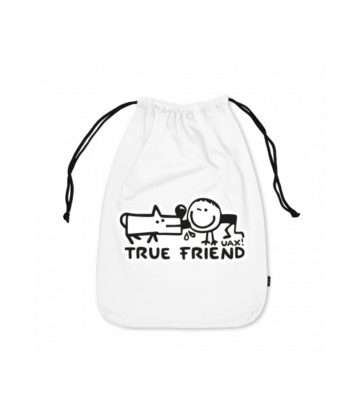 Medium cotton pouch with design 1123 TRUE FRIEND in color WHITE