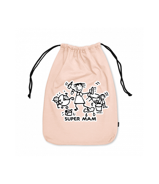 Medium cotton pouch with design 1126 SUPER MAM in color CAPPUCINO
