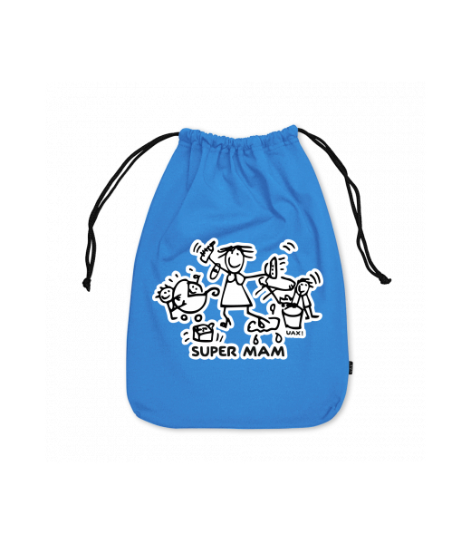 Medium cotton pouch with design 1126 SUPER MAM in color CAPRI BLUE