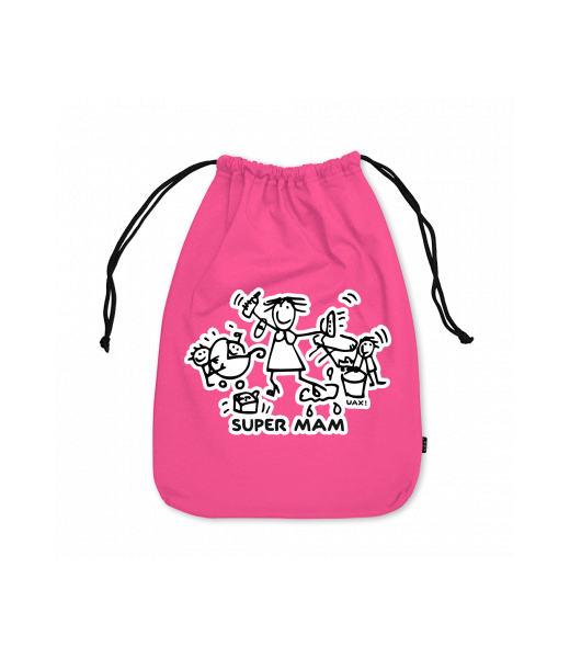 Medium cotton pouch with design 1126 SUPER MAM in color INDIAN LILA