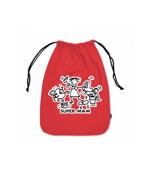 Medium cotton pouch with design 1126 SUPER MAM in color RED