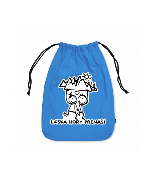 Medium cotton pouch with design 1128 LÁSKA HORY PŘENÁŠÍ in color CAPRI BLUE