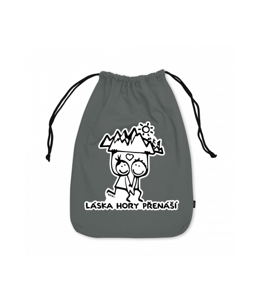 We make sustainable UAX clothing! - hand sewn in the Czech Republic uaxAccessories uaxAll productsBags and sacksMEDIUM COTTON POUCHdesign 1128 - LÁSKA HORY PŘENÁŠÍDARK GRAY