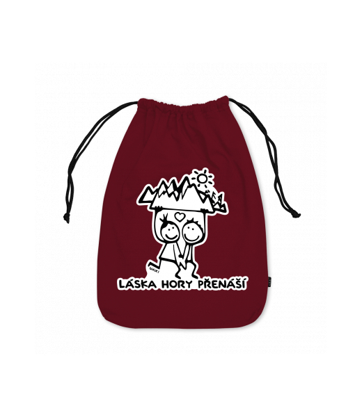 Medium cotton pouch with design 1128 LÁSKA HORY PŘENÁŠÍ in color DARK RED