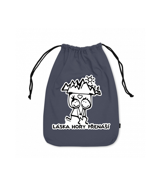 Medium cotton pouch with design 1128 LÁSKA HORY PŘENÁŠÍ in color GRAY INK
