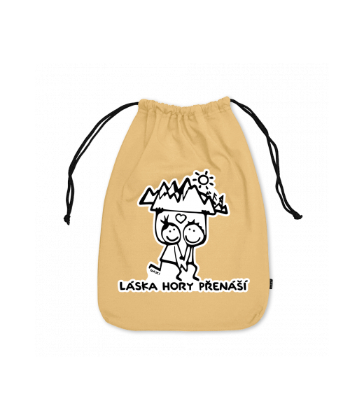 Medium cotton pouch with design 1128 LÁSKA HORY PŘENÁŠÍ in color MUSTARD