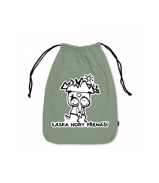 Medium cotton pouch with design 1128 LÁSKA HORY PŘENÁŠÍ in color OLIVA