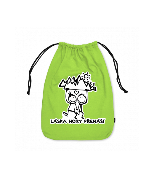 Medium cotton pouch with design 1128 LÁSKA HORY PŘENÁŠÍ in color PARROT GREEN