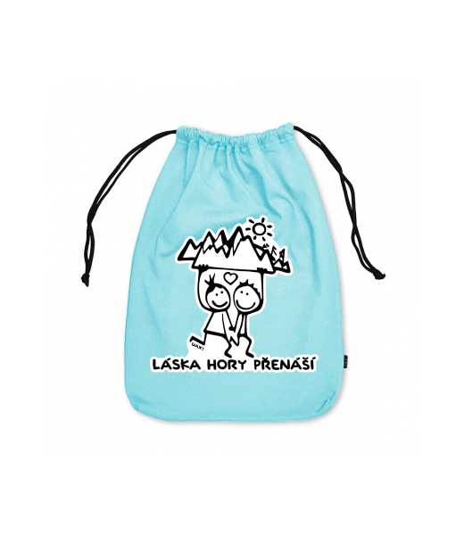 Medium cotton pouch with design 1128 LÁSKA HORY PŘENÁŠÍ in color PASTEL BLUE