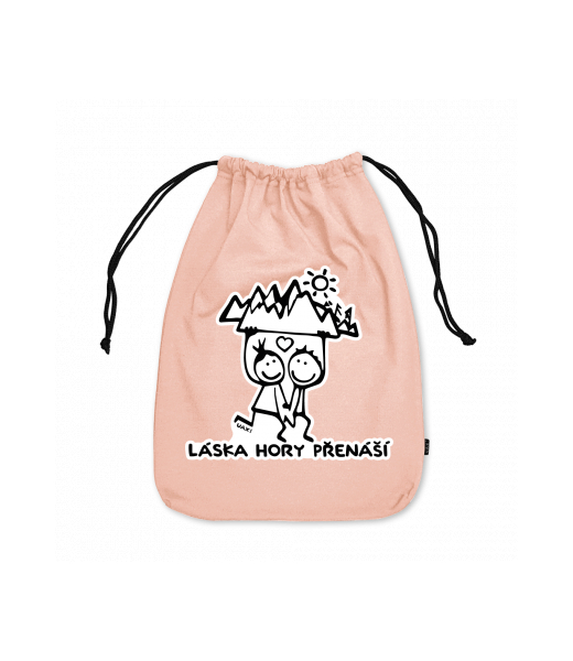 Medium cotton pouch with design 1128 LÁSKA HORY PŘENÁŠÍ in color PEACH
