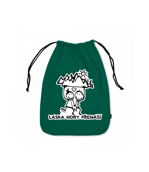 Medium cotton pouch with design 1128 LÁSKA HORY PŘENÁŠÍ in color UNIVERSITY GREEN