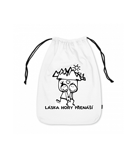 We make sustainable UAX clothing! - hand sewn in the Czech Republic uaxAccessories uaxAll productsBags and sacksMEDIUM COTTON POUCHdesign 1128 - LÁSKA HORY PŘENÁŠÍWHITE