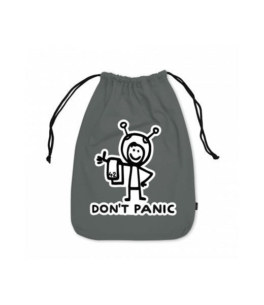 Medium cotton pouch with design 1157 DON'T PANIC in color DARK GRAY
