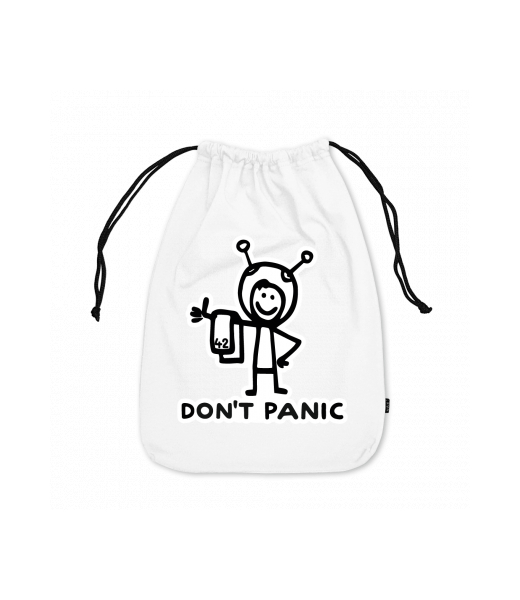 Medium cotton pouch with design 1157 DON'T PANIC in color WHITE