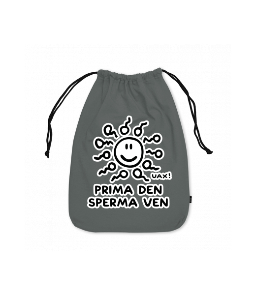 Medium cotton pouch with design 1265 PRIMA DEN SPERMA VEN in color DARK GRAY