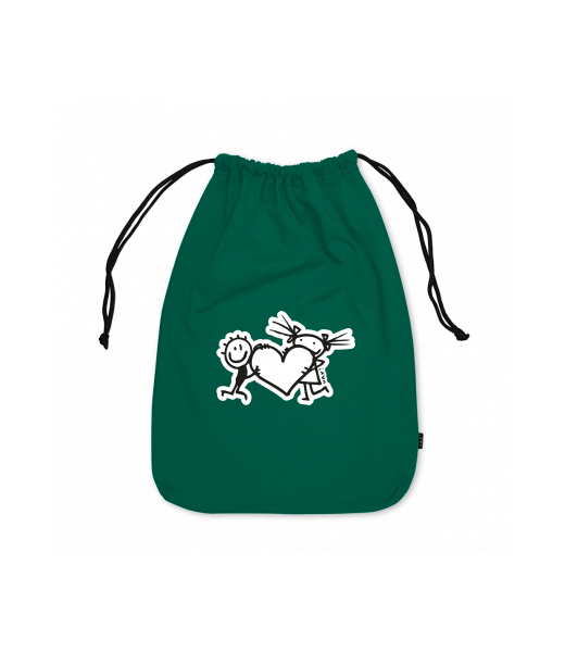Medium cotton pouch with design 543 LOVE in color UNIVERSITY GREEN