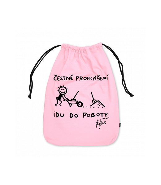 Small cotton pouch with design 1303 ČESTNÉ PROHLÁŠENÍ IDU DO ROBOTY in color BABY PINK
