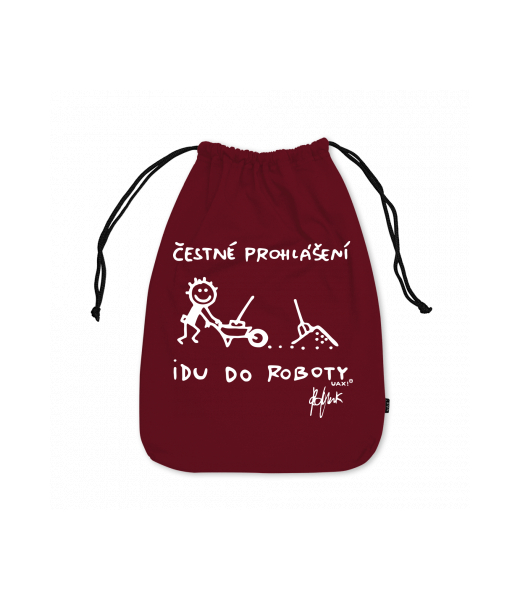 Small cotton pouch with design 1303 ČESTNÉ PROHLÁŠENÍ IDU DO ROBOTY in color DARK RED