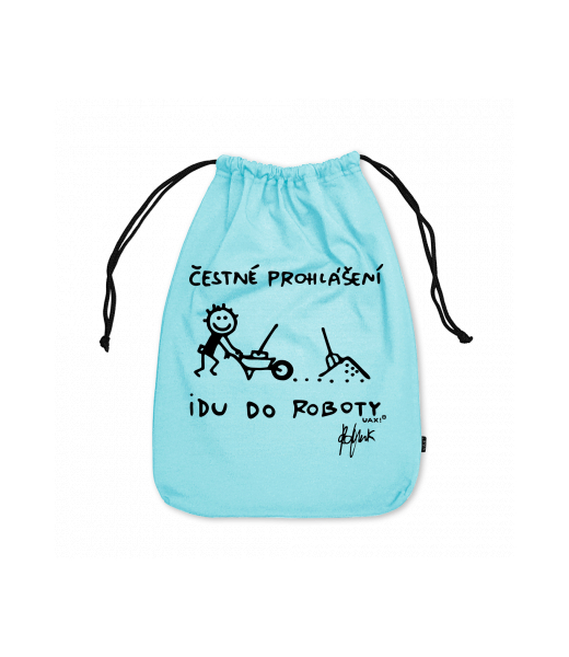 Small cotton pouch with design 1303 ČESTNÉ PROHLÁŠENÍ IDU DO ROBOTY in color PASTEL BLUE