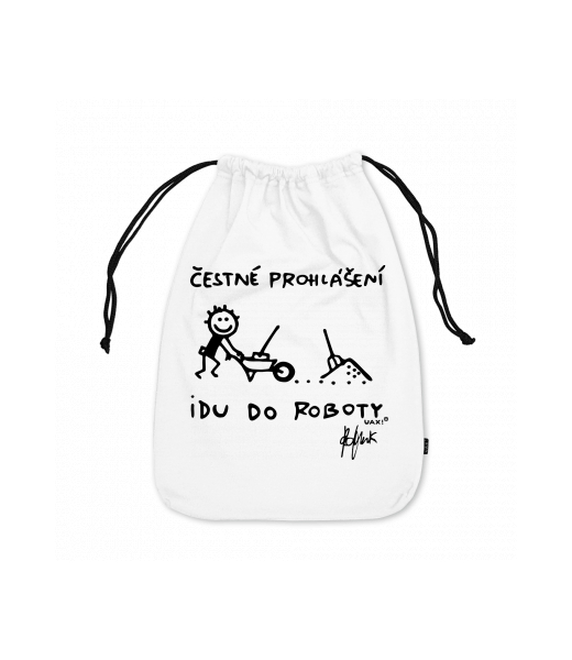 Small cotton pouch with design 1303 ČESTNÉ PROHLÁŠENÍ IDU DO ROBOTY in color WHITE