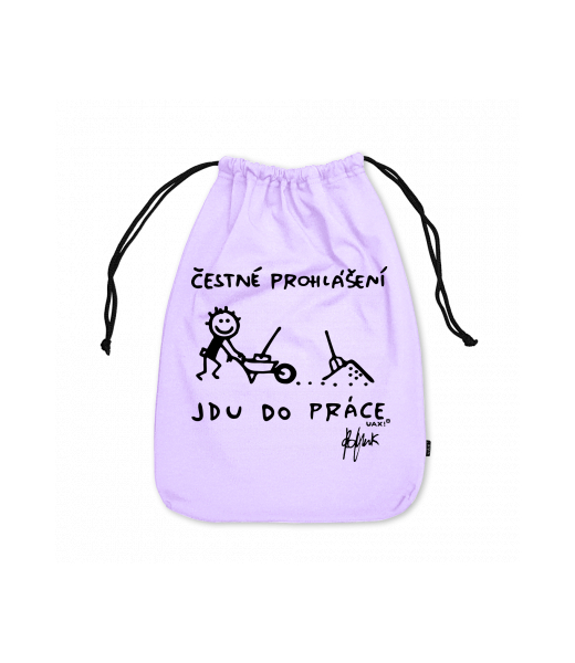 Small cotton pouch with design 1304 ČESTNÉ PROHLÁŠENÍ JDU DO PRÁCE in color LAVENDER