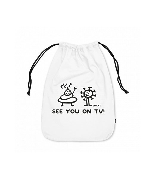 Small cotton pouch with design 1306 SEE YOU ON TV in color WHITE