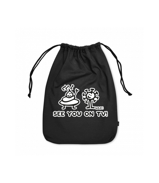 We make sustainable UAX clothing! - hand sewn in the Czech Republic uaxAccessories uaxAll productsBags and sacksSMALL COTTON POUCHdesign 1306 - SEE YOU ON TVBLACK