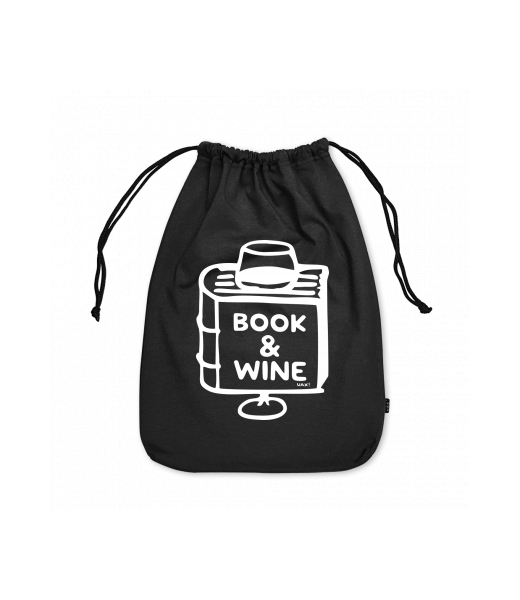 Small cotton pouch with design 1322 BOOK AND WINE in color BLACK