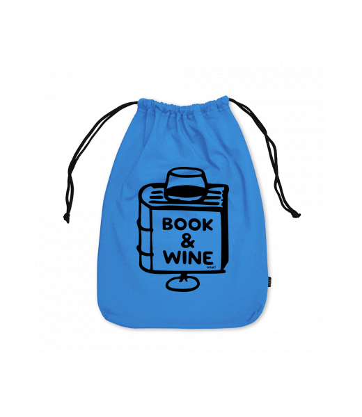 Small cotton pouch with design 1322 BOOK AND WINE in color CAPRI BLUE