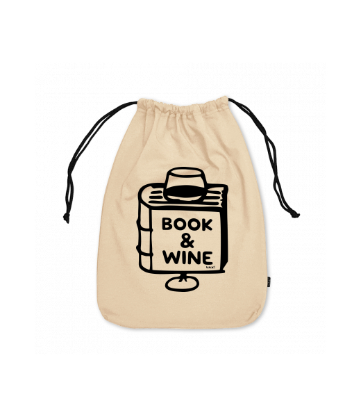 Small cotton pouch with design 1322 BOOK AND WINE in color CARAMEL