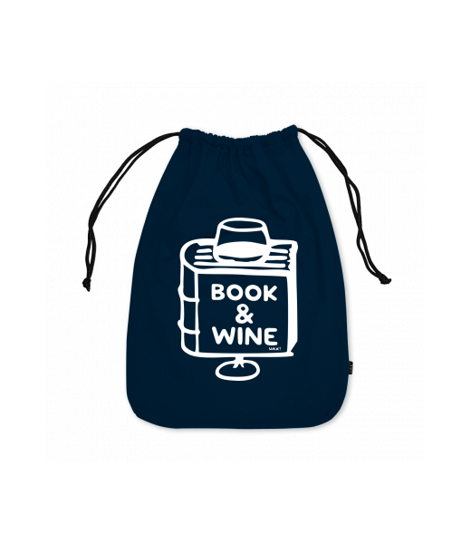 Small cotton pouch with design 1322 BOOK AND WINE in color DARK NAVY