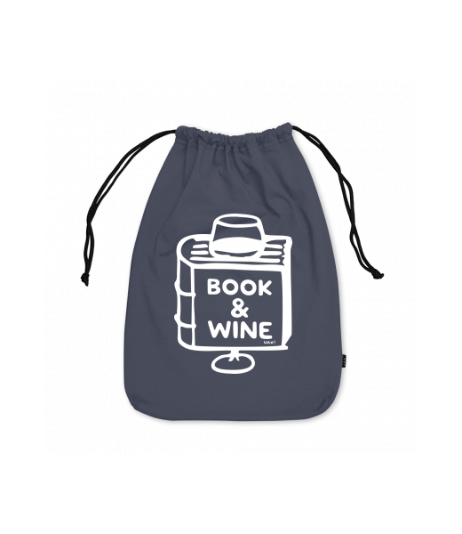 Small cotton pouch with design 1322 BOOK AND WINE in color GRAY INK
