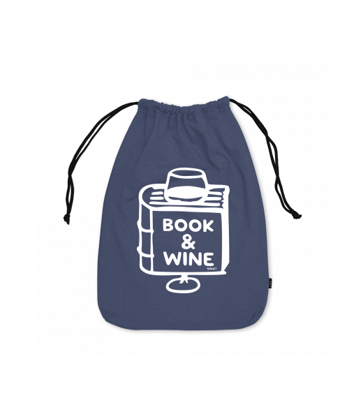 Small cotton pouch with design 1322 BOOK AND WINE in color JEANS