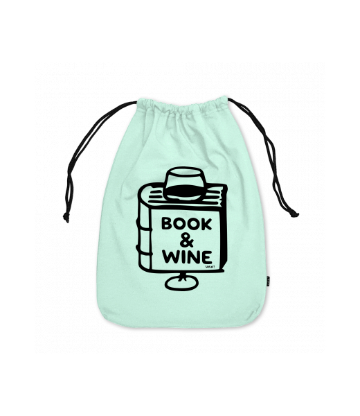 Small cotton pouch with design 1322 BOOK AND WINE in color MINT