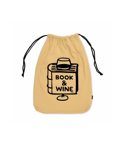Small cotton pouch with design 1322 BOOK AND WINE in color MUSTARD