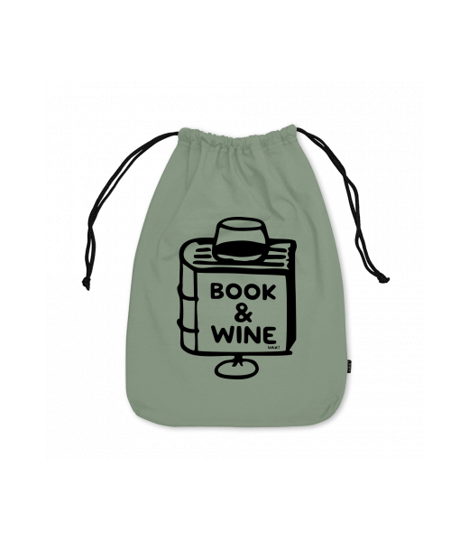 Small cotton pouch with design 1322 BOOK AND WINE in color OLIVA
