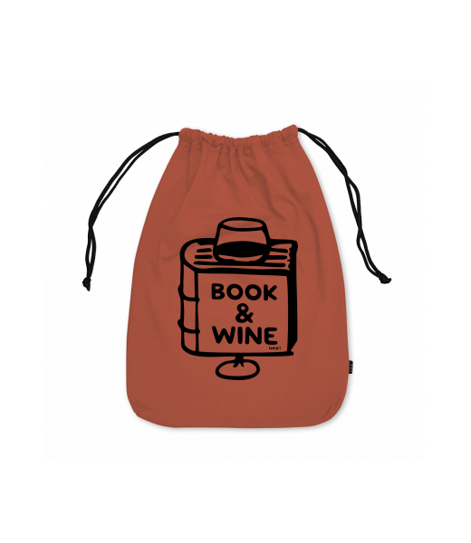 Small cotton pouch with design 1322 BOOK AND WINE in color TERRA