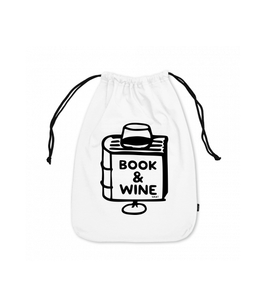 Small cotton pouch with design 1322 BOOK AND WINE in color WHITE