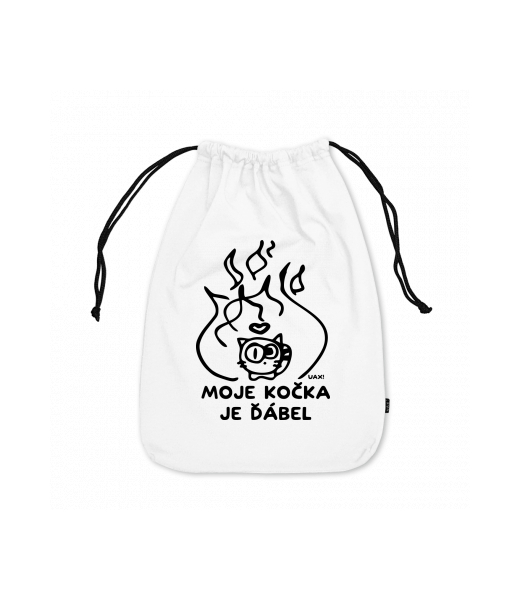 Small cotton pouch with design 1326 MOJE KOČKA JE ĎÁBEL in color WHITE