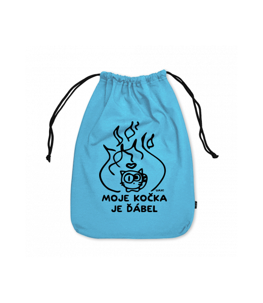 Small cotton pouch with design 1326 MOJE KOČKA JE ĎÁBEL in color BLUE ATOLL
