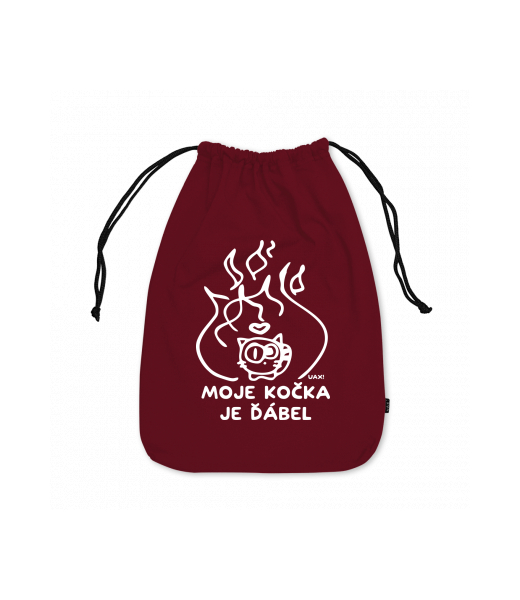 Small cotton pouch with design 1326 MOJE KOČKA JE ĎÁBEL in color DARK RED