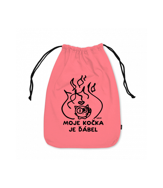 Small cotton pouch with design 1326 MOJE KOČKA JE ĎÁBEL in color LOSOSOVA