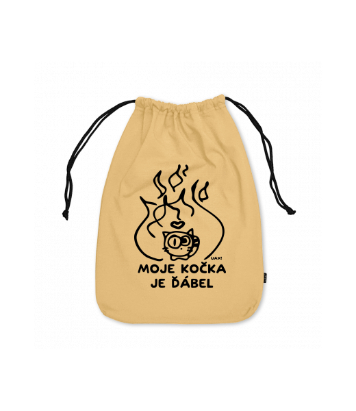 Small cotton pouch with design 1326 MOJE KOČKA JE ĎÁBEL in color MUSTARD