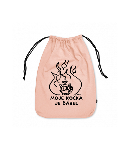 Small cotton pouch with design 1326 MOJE KOČKA JE ĎÁBEL in color PEACH